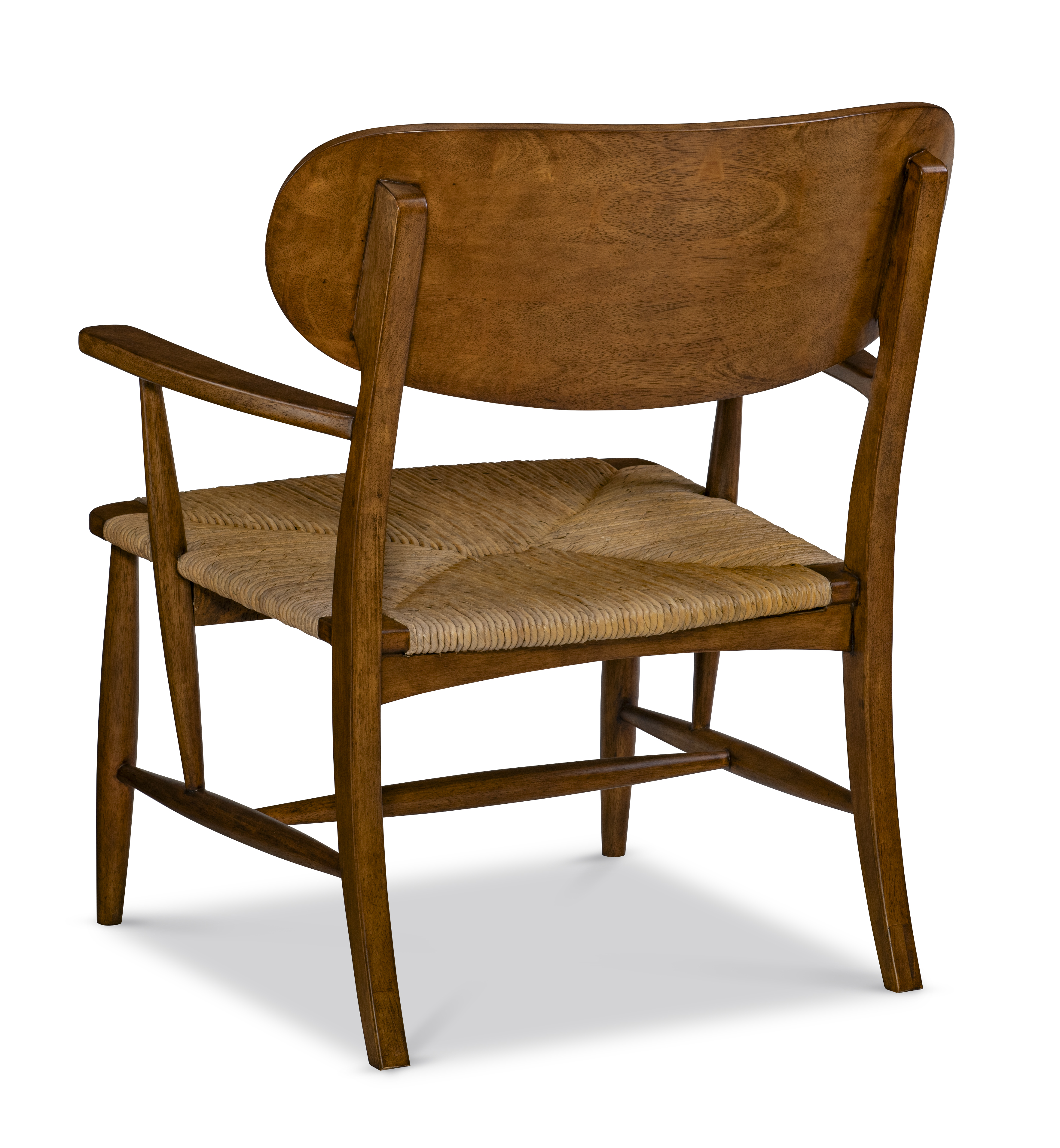 A beautifully proportioned bleached walnut armchair that blends rustic charm with refined craftsmanship. The sculpted wood frame and woven rush seat create a warm, tactile aesthetic that feels both relaxed and timeless. Its simplicity and craftsmanship nod to classic mid-century European design—an ethos often reflected in Maitland-Smith’s appreciation for artisanal detail.
