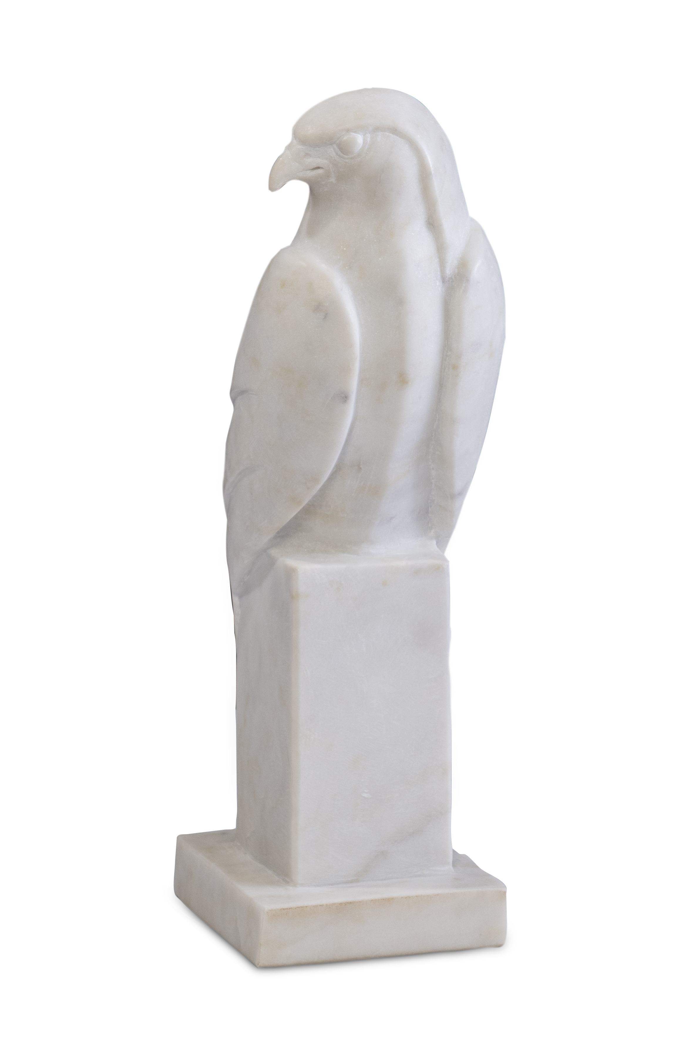 Carved from luminous white marble, this stylized falcon stands as an emblem of vision and mastery. With its sweeping geometric planes and poised silhouette, the piece bridges the grace of nature with the precision of classic design. The falcon’s gaze—focused and resolute—evokes an age when art and architecture celebrated power through restraint. Whether displayed singly or in pairs, it commands attention with a sense of timeless dignity.