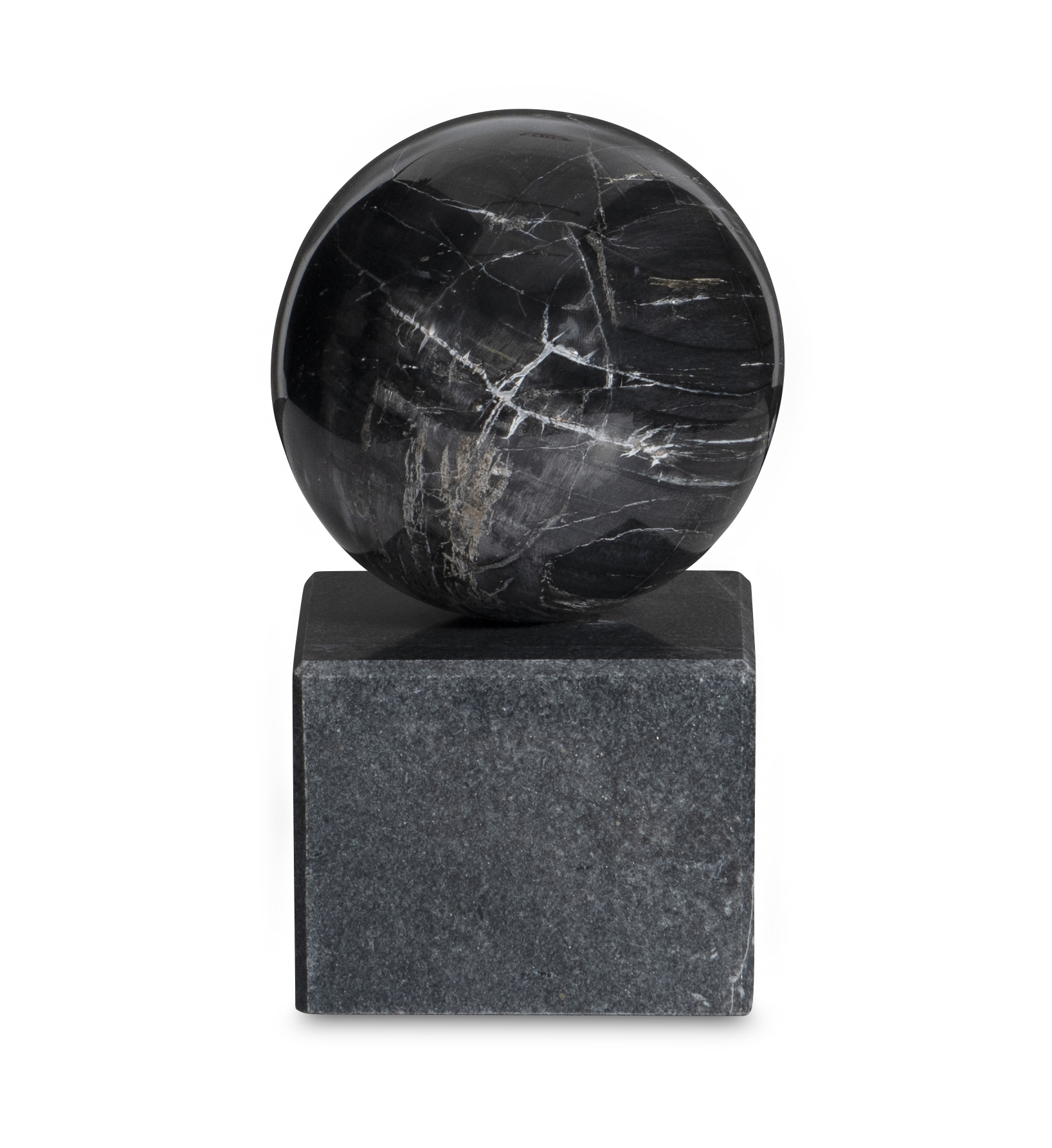 Evoking the quiet strength of elemental form, this marble orb rests with serene balance atop a geometric plinth. The piece celebrates the contrast between organic curvature and architectural structure — a timeless harmony of nature and design. Subtle veining across the polished marble surface lends each sculpture its own unique rhythm, transforming simple geometry into an expression of refined artistry.