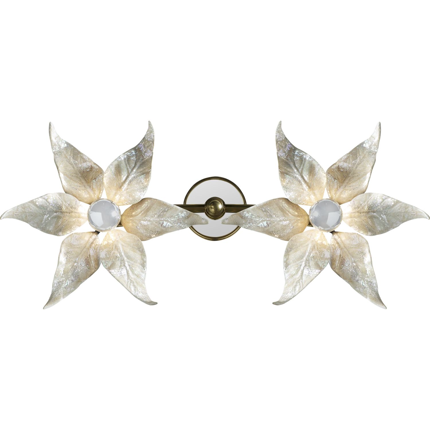 White Oyster Shell Inlaid Wall Sconce, Floral Decor, Soft Brass and Glass Accents