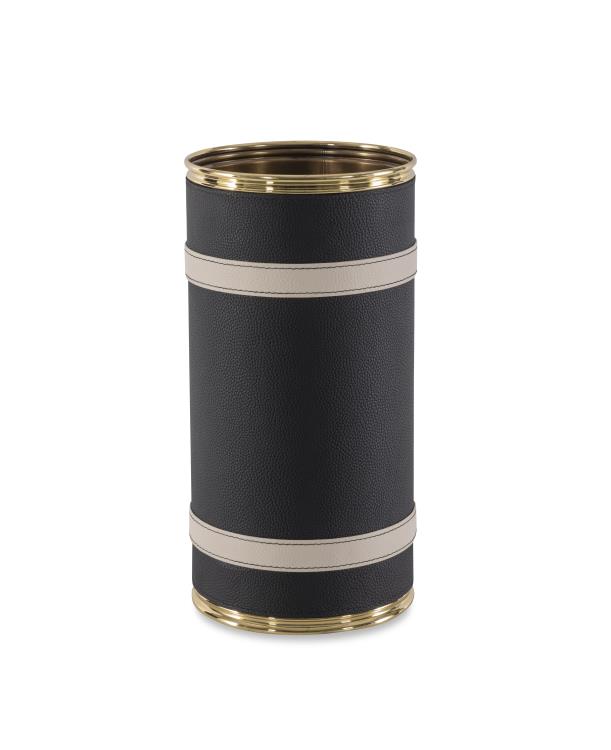 Brass umbrella stand with Italian leather in Navy with White leather banding.