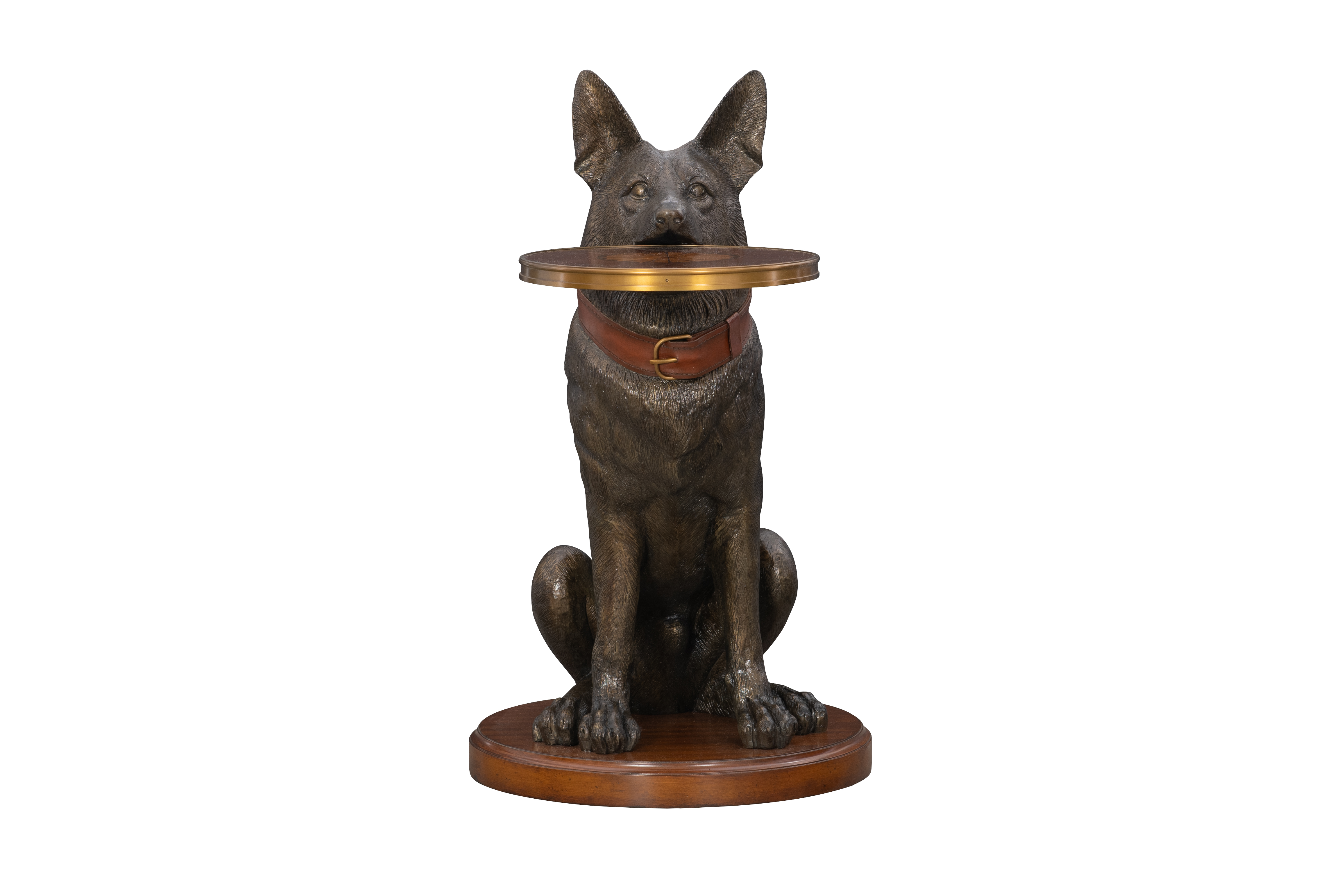 Metallic Brown Finished Cast Resin German Shepherd with Tray Table, Antique Brass Accents