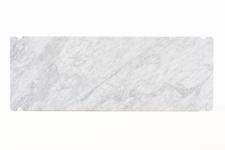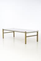 Volakas marble and brass finished cocktail table with "puzzle" pattern top.