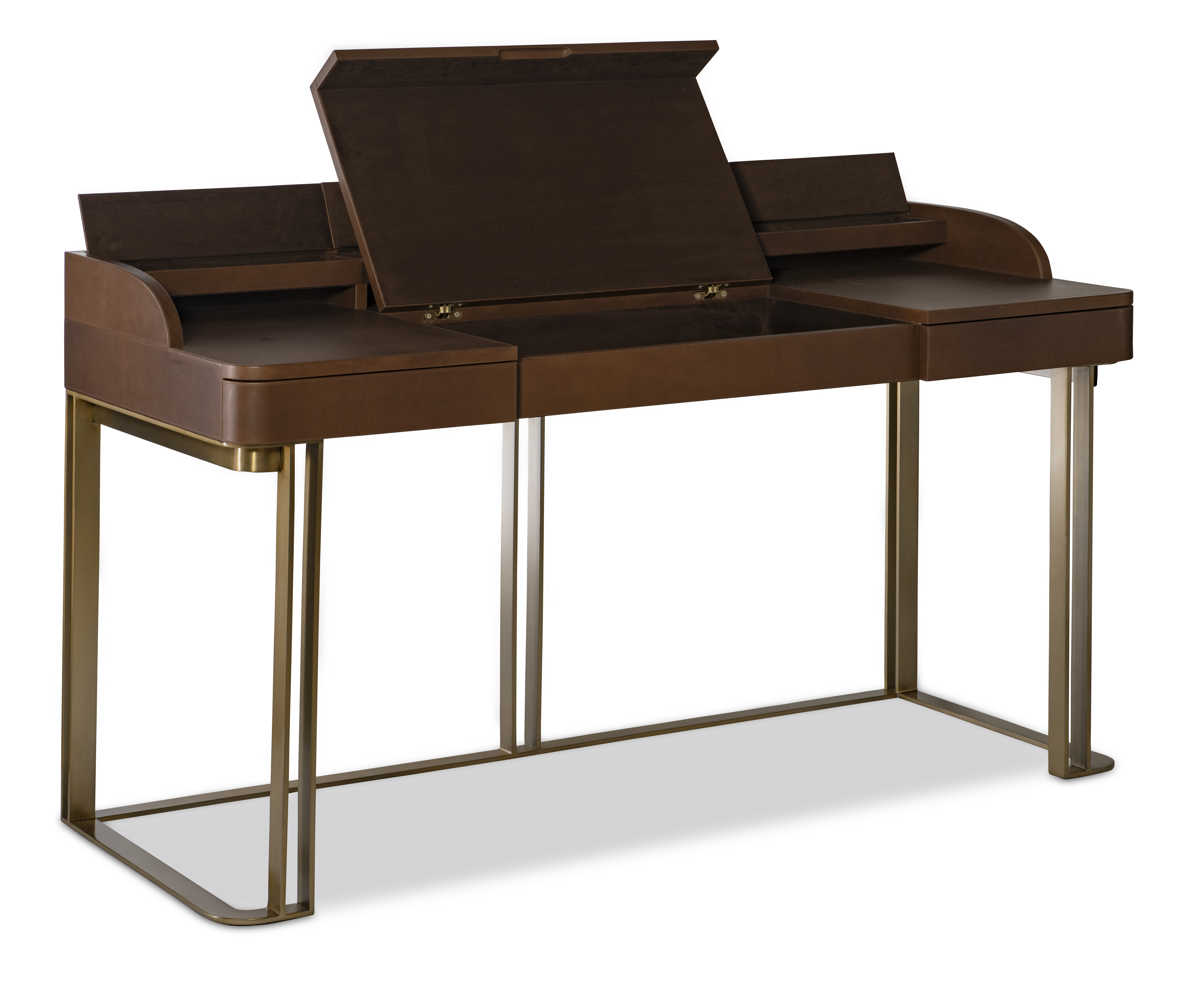 Graceful and composed, the Anastasia Desk evokes the quiet elegance of a refined writing table. A richly finished wood case with softly rounded edges rests upon a slender metal base, creating a balanced interplay of warmth and structure. Discreet drawers provide thoughtful storage, while the raised gallery along the back lends the piece the character of a traditional writing desk. Both practical and poised, the desk reflects Maitland-Smith’s enduring appreciation for storied materials, tailored craftsmanship, and timeless design.
