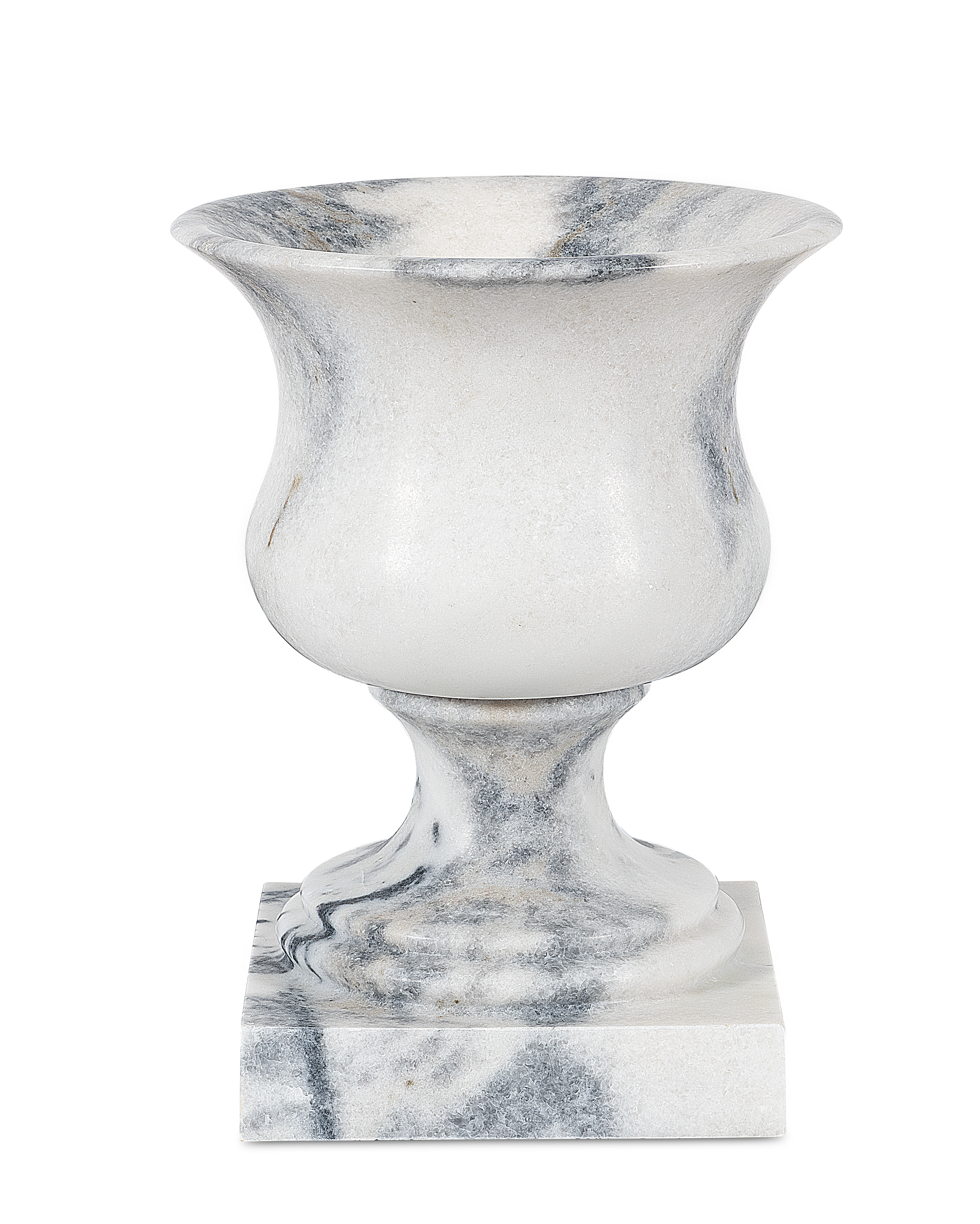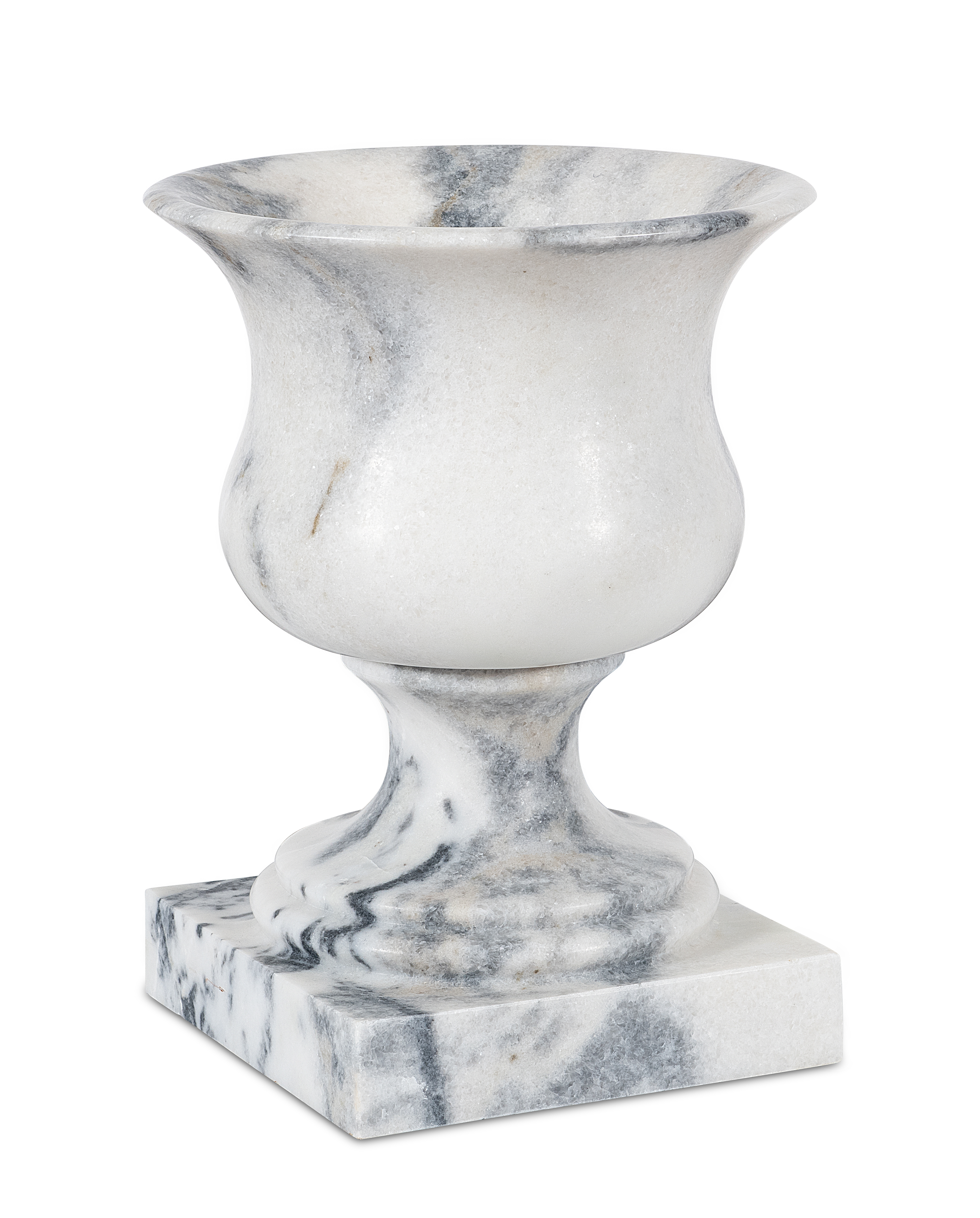 With its sweeping lip and balanced curvature, the vase captures the quiet elegance of classical antiquity. Its form—neither austere nor ornate—embodies the measured harmony found in ancient sculpture. Hand-finished in luminous white marble, it radiates a subtle luminosity, serving as both vessel and sculpture. Whether framing an entry or standing sentinel on a terrace, it brings timeless serenity to any space.