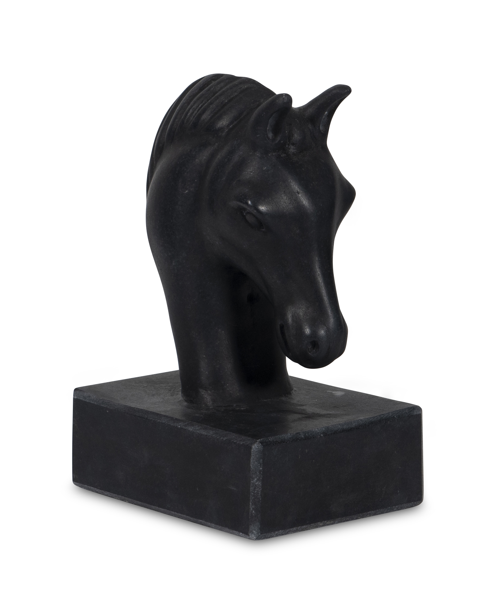 Majestic and timeless, this sculpted horse recalls the noble fragments of ancient equestrian monuments. Hand-carved from marble, its powerful lines and refined contours speak to both strength and grace. Resting upon a fluted plinth, the form captures the poise of a classical steed immortalized in stone. A polished Nero Marquina marble accent adds contrast and depth, evoking the dialogue between light and shadow found in the great statuary of antiquity.